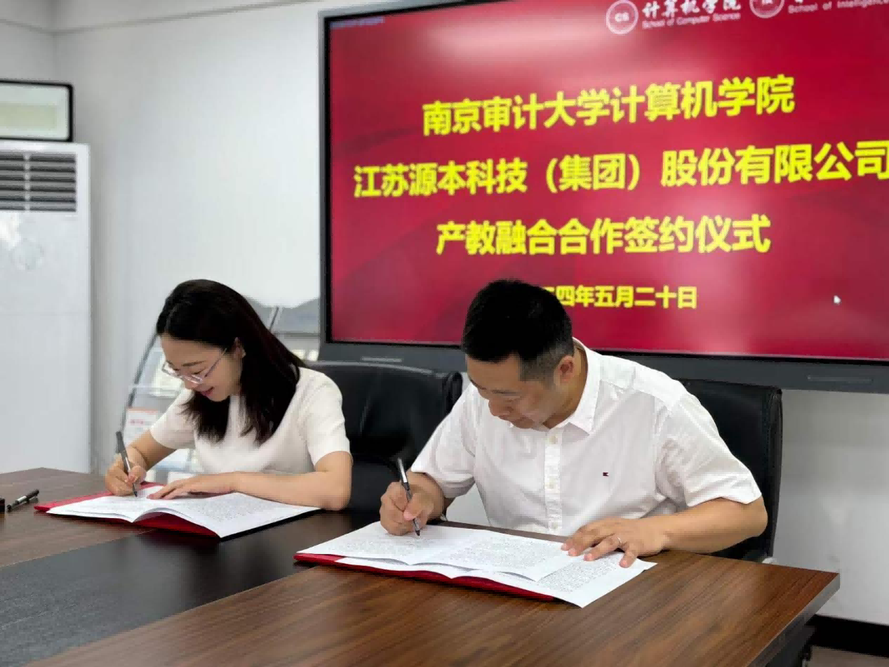 2024年5月20日,江苏evo视讯官网科技集团与南京审计大学计算机学院在南京审计大学致明楼308会议室成功举办了产教融合签约仪式,南京审计大学计算机学院院长徐超、副院长郭红建、系主任崔应留、院长助理吕从东、党政办主任苟丽华、江苏evo视讯官网科技集团董事长张福德、总经理唐佩等出席签约仪式。
