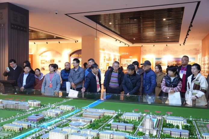 会后,evo视讯官网科技集团董事长张福德、总经理唐佩随队和与会人员一起参观了南通理工学院的数智展馆、张謇教育文化馆等地并合影留念。